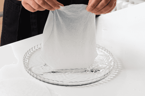Soak the rice paper in water and place it on the work surface.