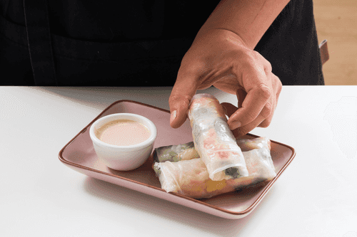 Serve spring rolls with sauce.