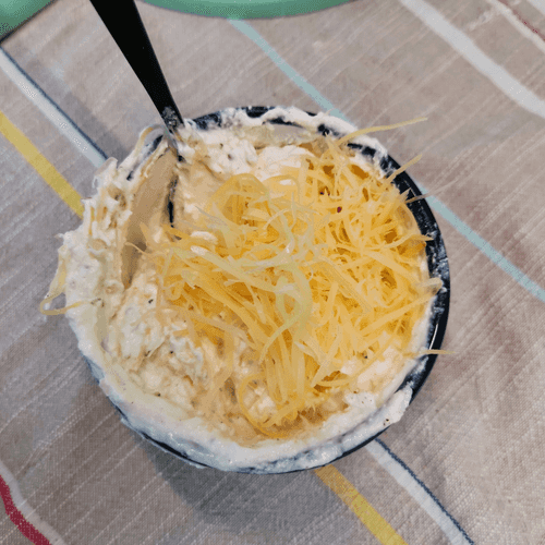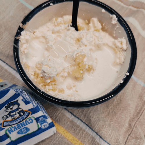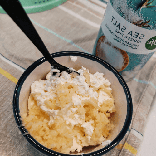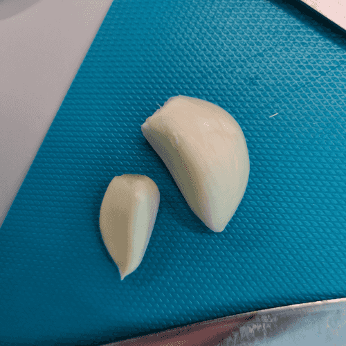 Crush garlic in a deep bowl using a press and mix with cottage cheese. Add salt.
