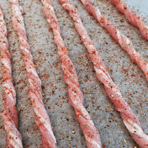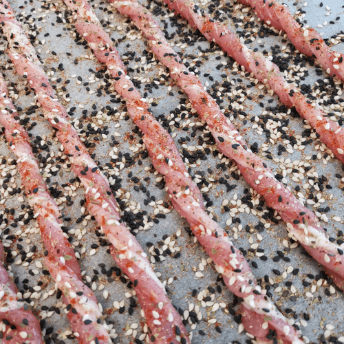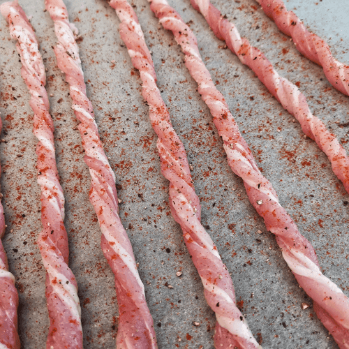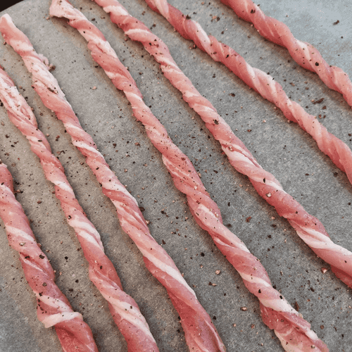Crispy bacon sticks with sesame are a delicious treat from American cuisine that combines the rich flavor of bacon with the aroma of spices and a nutty hint of sesame. The dish originated as a snack for parties and barbecues, where simplicity of preparation and vibrant taste are valued. Bacon slices twisted into spirals are enriched with pepper, paprika, and oregano, then coated with sesame to create a crispy golden crust. Baked to perfection, they reveal the depth of smoky flavor, while a final touch of nutmeg adds warm spiciness. Perfectly paired with sauces or fresh vegetables, these sticks will become a favorite treat on any table, highlighting the richness of flavor nuances.