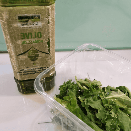 Place the kale in a deep bowl, then pour in the olive oil.