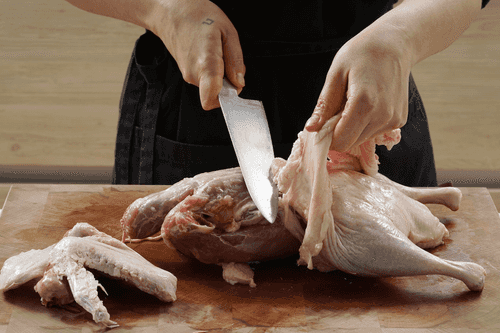 Rinse the duck under running water. Remove the skin and set it aside in the refrigerator. Separate the wings and legs from the body.