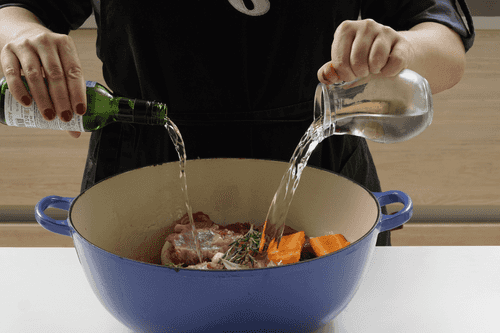 Add water and wine.