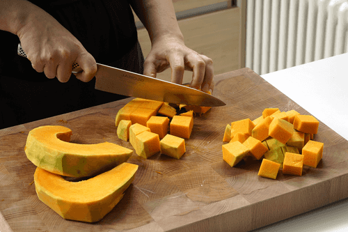 Cut the pumpkin into small pieces. Place in a bowl, cover with plastic wrap, and microwave for 5-6 minutes until soft.