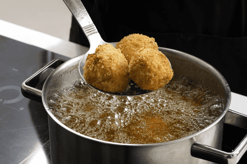 Fry the croquettes in heated vegetable oil at 180 degrees until golden brown.