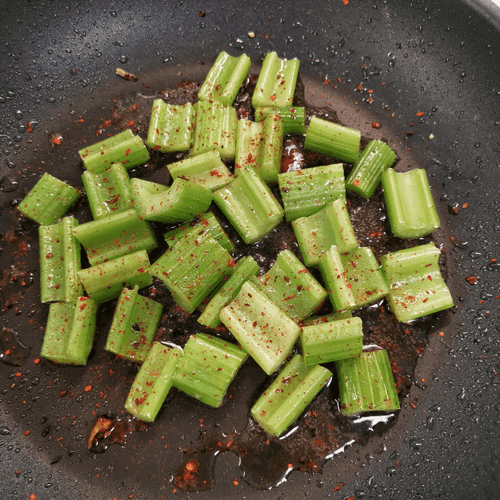 Add salt and chili pepper. Fry for about 5 minutes, stirring occasionally.
