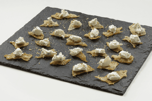 The simplest recipe in which chicken skin achieves a pleasant crispiness. It should be cooked in the same way as fatty bacon - covered with parchment. This way the chips will retain their shape and get rid of excess fat. The curd mousse with lemon zest here perfectly sets off and refreshes the chips, which is why the dish stops seeming like a concentrate of fat.