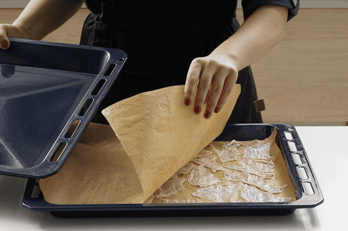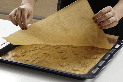 Place a second sheet of baking paper on top. Press down with a second baking tray.