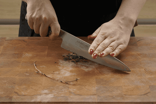 Prepare the filling. Remove thyme leaves from the stem and chop.