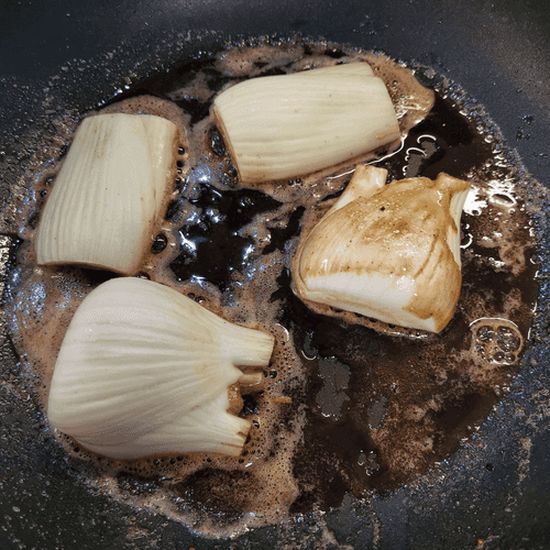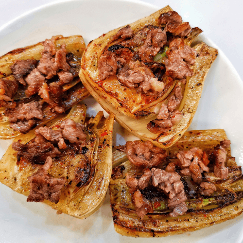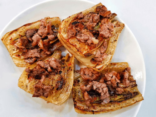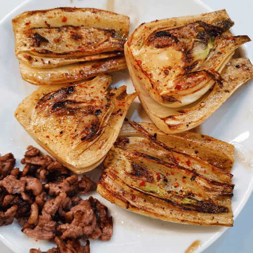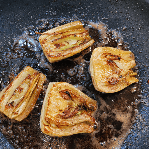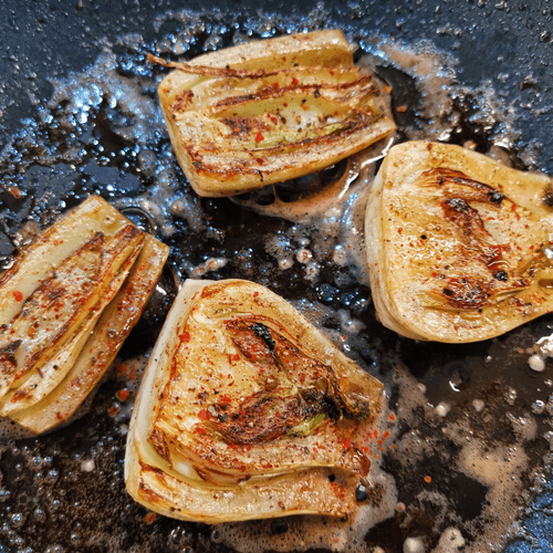 Fried fennel with bacon is an unusual combination of the sweet, slightly anise-flavored fennel and the crispy salty texture of bacon. This recipe was born from the search for new gastronomic solutions, where the harmony between the freshness of vegetables and the rich flavor of meat plays a key role. The oily garlic aroma adds warmth to the dish, while chili pepper adds a slight spiciness. This option is perfect as a side dish for meat dishes or as a standalone appetizer that surprises with its simplicity and richness of flavor. It pairs perfectly with a glass of dry white wine, highlighting its herbal and smoky notes.