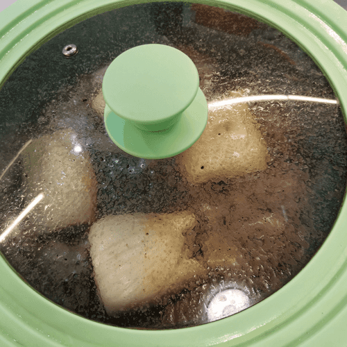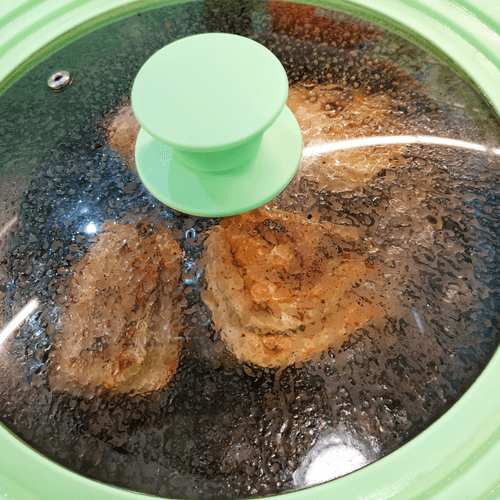 After a couple of minutes, cover with a lid and reduce the heat to medium.