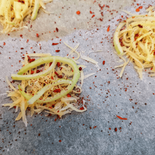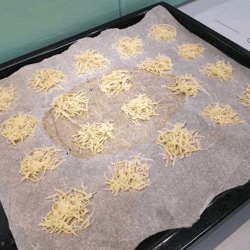 Place 'mounds' of cheese (about a tablespoon each) on a parchment-lined baking sheet.