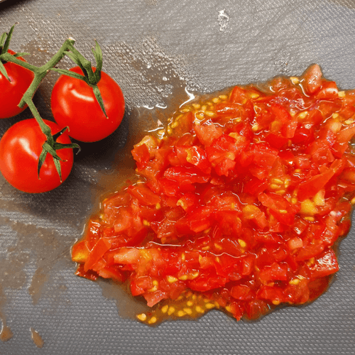 Chop the cherry tomatoes with a knife.
