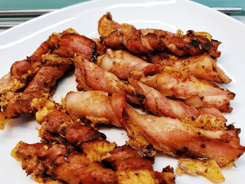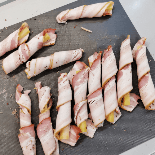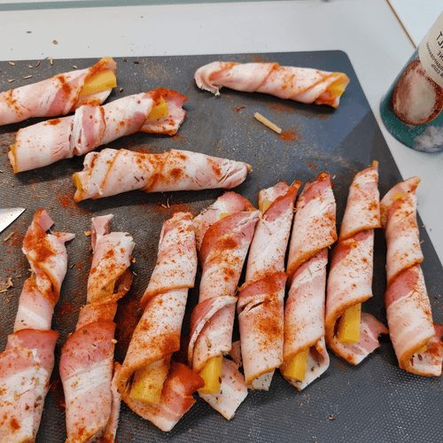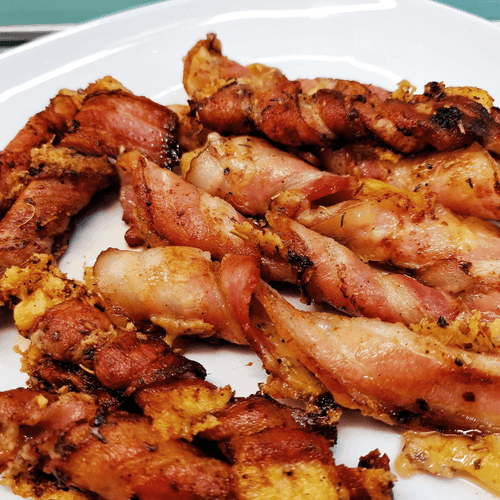 Bacon and cheese appetizer is the perfect combination of crispy bacon and soft, gooey cheese. This recipe has authorial roots but is inspired by traditional European snack preparation methods that use contrasting textures and flavors. Crispy fried bacon reveals a smoky taste that perfectly complements the creamy softness of the cheese. Spices like black pepper, herbes de Provence, and paprika add zest and sophistication to the dish. It's ideal for cozy home gatherings or as an exquisite appetizer at a party. It can be served with sauces, fresh vegetables, or even on toast to enhance the flavor palette. Easy to prepare yet impactful in taste, this dish is sure to become a favorite on your menu!
