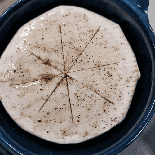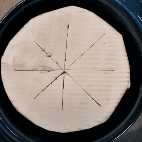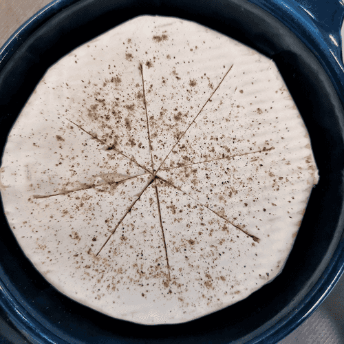 Place the Camembert in a baking dish. Make shallow cuts.