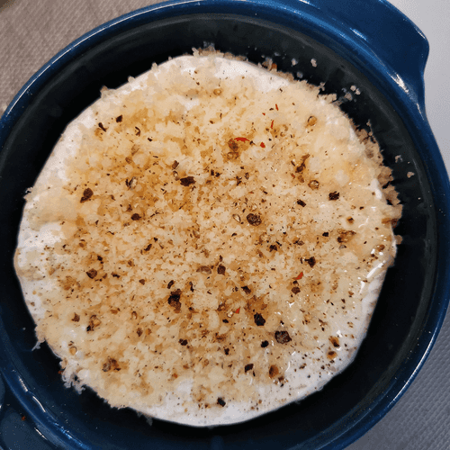Запеченный камамбер с клюквой и пармезаном — это изысканный гастрономический шедевр, сочетающий нежность французского сыра с пряными и кисло-сладкими нотками. Камамбер, известный своим кремовым вкусом и бархатистой текстурой, в процессе запекания становится еще более мягким и раскрывает свой аромат. Кислая клюква добавляет яркий контраст, создавая игру вкусов, а пармезан придает блюду пикантную солоноватую глубину. Это угощение идеально подойдет как закуска к бокалу вина или как оригинальное дополнение к праздничному столу. Каждая ложка этого тягучего, ароматного сыра с ягодной кислинкой и пряными нотками оставляет незабываемые впечатления. Запеканный камамбер — это элегантное угощение, способное превратить любой вечер в гастрономическое наслаждение.
