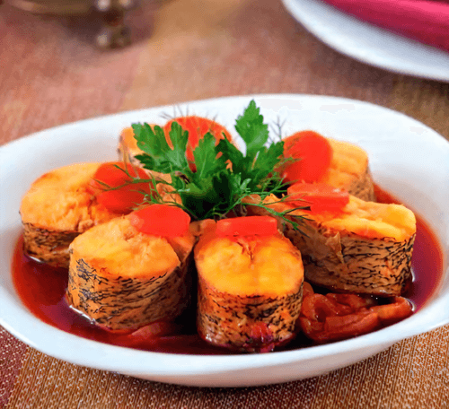 Layer beets at the bottom of another wide pot, then half of the fish, carrots, the remaining fish, and onion rings. Pour fish broth just enough to cover the top layer of onions.