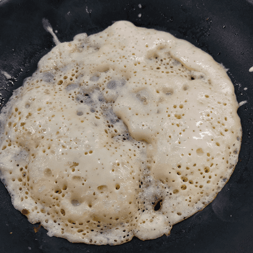 Flip after 1-1.5 minutes. Fry for another minute on lower heat. Repeat steps 8-10 until the mixture is finished.