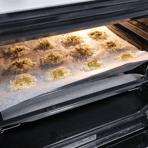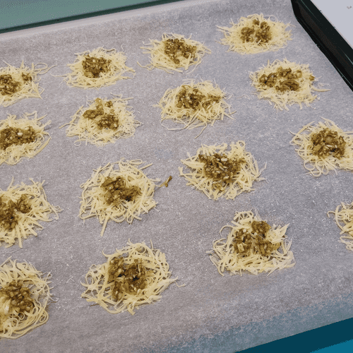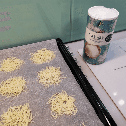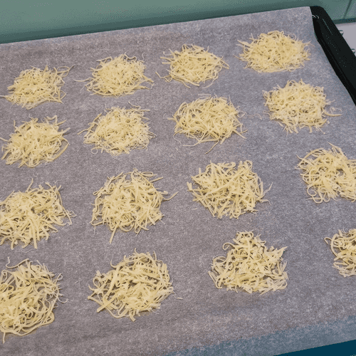 Place cheese in circles (1 tablespoon each) on a baking sheet lined with parchment.
