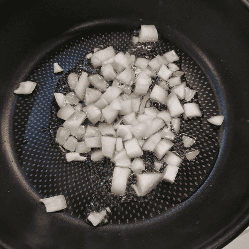 Send the onion to the heated oil in the pan.