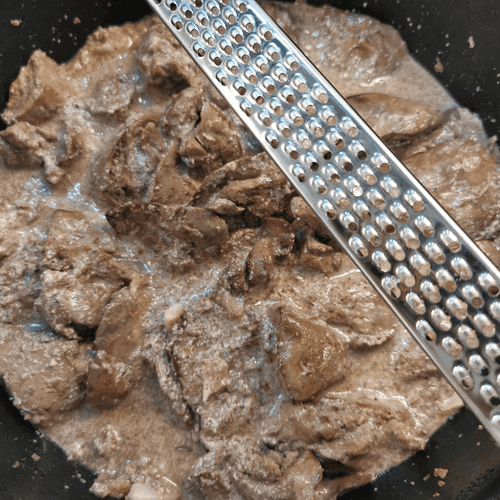 Once the cream starts to boil, season with nutmeg and mix well. Remove from heat.