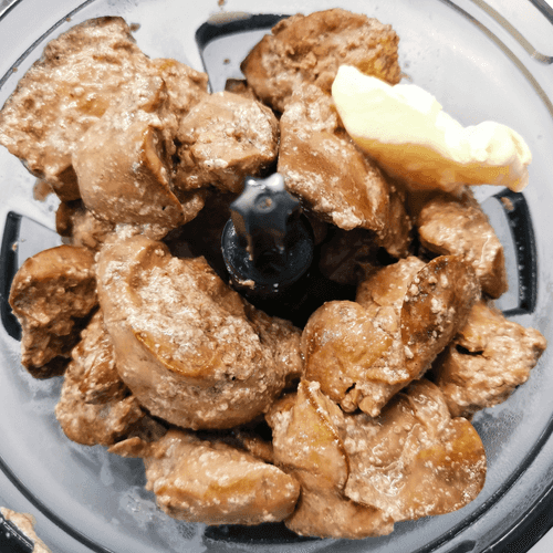 Duck liver pâté is an exquisite dish with a rich flavor and velvety texture. Its history roots back to French gastronomy, where duck has always been valued for its tenderness and flavor richness. This recipe features deep aromas: sweet onion and garlic reveal the rich taste of the liver, while cognac adds a refined note of noble aging. Creamy cream and butter make the pâté tender and airy, while nutmeg adds warm spice. It is enjoyed as an elegant appetizer – magnificent on crispy baguette or with caramelized onions. This dish pairs perfectly with wine or light fruit jam, creating a sophisticated contrast. Duck liver pâté is not just food; it’s a gastronomic delight worthy of special moments.
