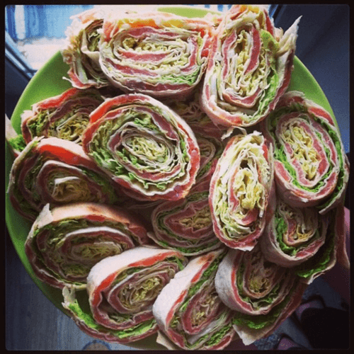 Here they wrap salmon in pita bread - fatty, slightly sweet, very tasty. And there are also green onions and dill, and all together it gives a beautiful, elegant color composition.