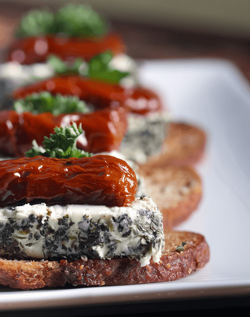 Canapés with ricotta cheese and roasted tomatoes are an exquisite appetizer embodying the elegance of French cuisine. The delicate ricotta, velvety and slightly sweet, pairs beautifully with caramelized tomatoes infused with the aroma of honey and spices. Crispy slices of rye bread create the perfect balance of textures, while fresh basil adds a refreshing touch. This dish not only delights the palate but also becomes the centerpiece at any gathering. Canapés are ideal for both a light aperitif and an elegant party, allowing one to enjoy the harmony of flavors and aromas born in the heart of French gastronomic traditions.