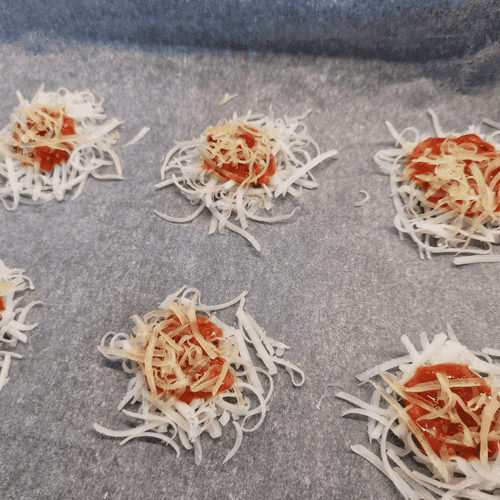 Add half a teaspoon of sauce to each portion of cheese.