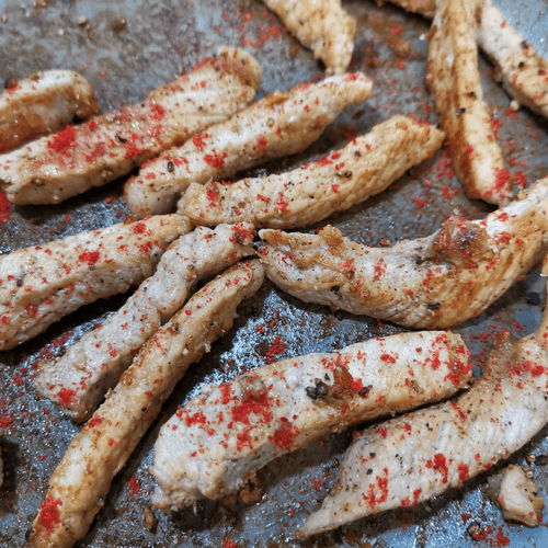 Pork straw is a simple yet exquisite dish that highlights the natural flavor of meat and spices. Thin strips of pork fried in a dry hot pan develop an appetizing crust, while spices add depth to the taste. White and black pepper give the dish a piquancy, and sea salt enhances the juiciness of the meat. The heat of chili pepper makes the flavor richer. This dish is suitable as a standalone snack or as an addition to a fresh salad or side dish. Its simplicity in preparation makes it an excellent option for a quick dinner, while its rich aroma and crispy texture captivate from the first bite.