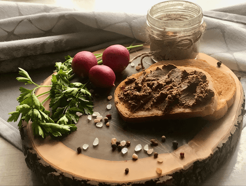 Preheat the oven to 200 degrees. Place the pâté on foil, shape it into a sausage, and seal it on all sides.
