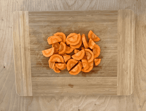Peel the carrot, wash it, and cut into 2 cm pieces.