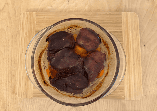 Запеченный паштет из печени индейки — изысканное блюдо еврейской кухни, пропитанное традициями и домашним уютом. Этот паштет обладает насыщенным, бархатистым вкусом с легкой сладостью моркови и пикантностью специй. Готовится он путем запекания печени вместе с овощами, что придает ему особую глубину вкуса и нежность. В финале паштет дополнительно запекается в фольге, приобретая плотную текстуру и насыщенный аромат. Его можно подавать как самостоятельную закуску, намазав на хрустящий хлеб, или использовать как основу для сложных гастрономических сочетаний. В еврейских семьях подобные паштеты часто занимают почетное место на праздничном столе, символизируя тепло домашнего очага и многовековые традиции.