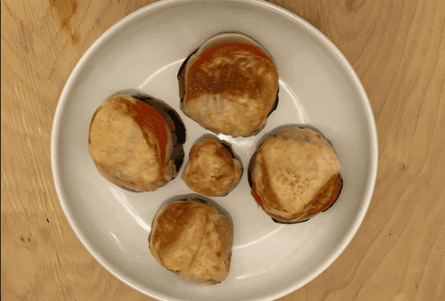 Cool down and then carefully separate the ingredient circles from each other (they deform when separated while hot). Garnish with dill when serving.