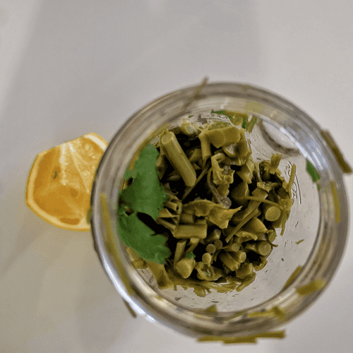Combine garlic and greens in a blender and drizzle with lemon juice.