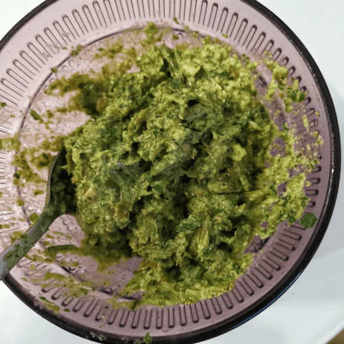 If the consistency is slightly runny, you can add a bit more chopped greens.