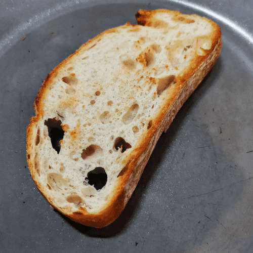 Toast the slice of bread on a dry hot pan on both sides.