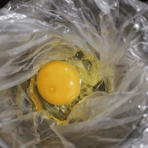 Send the package into boiling water. After 3 minutes, transfer it to a plate and carefully (be careful: it's hot!) remove the package.