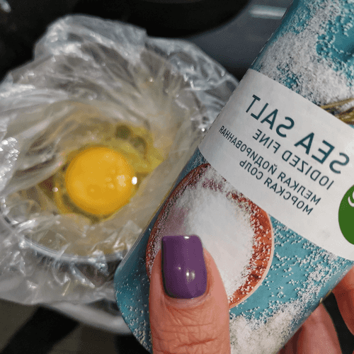 Add a pinch of salt, then tie the bag.