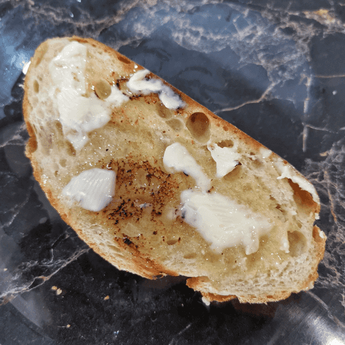 Toast the bread on both sides in a dry hot pan until lightly browned.