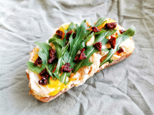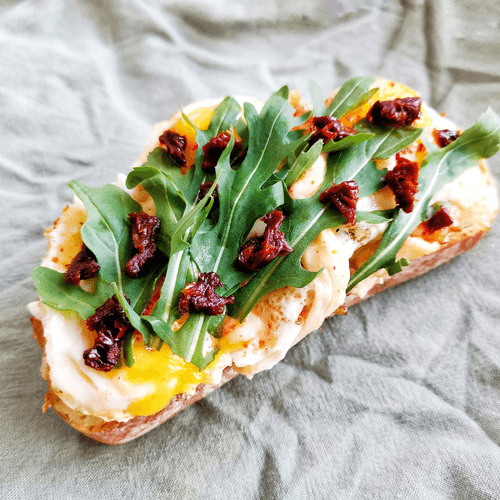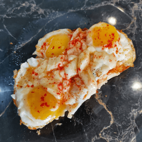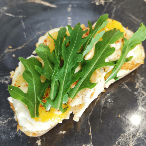 Bruschetta with quail eggs is a refined blend of simplicity and sophistication. This signature recipe is inspired by traditional Italian bruschettas but gives them a new character with delicate quail eggs and spicy sun-dried tomatoes. Crispy ciabatta infused with garlic aroma creates the perfect base for creamy scrambled eggs enriched with suluguni cheese and a light chili kick. Arugula adds freshness to the dish, while mayonnaise softens the flavor. This dish is not just an appetizer but a true gastronomic highlight on any table, perfectly paired with a glass of white wine or a cup of aromatic coffee.