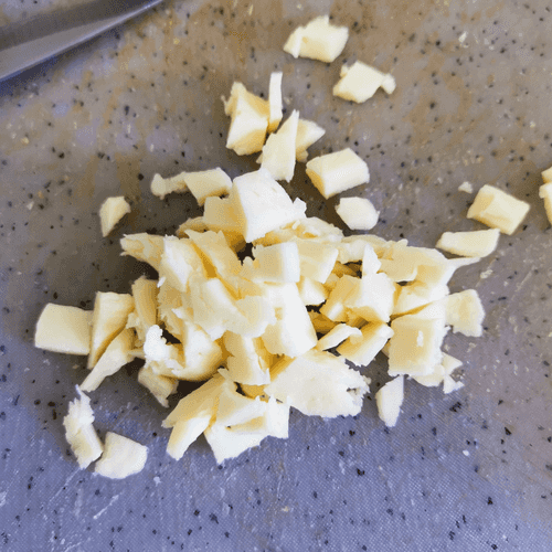 Cut the cheese into small pieces.