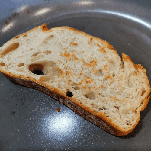 Fry the bread on a dry hot skillet on both sides until golden brown.