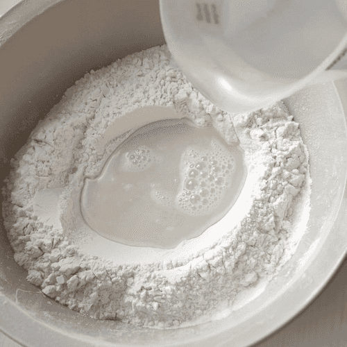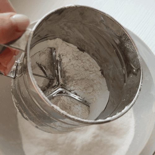 Sift the wheat flour into a deep bowl to allow it to absorb oxygen.