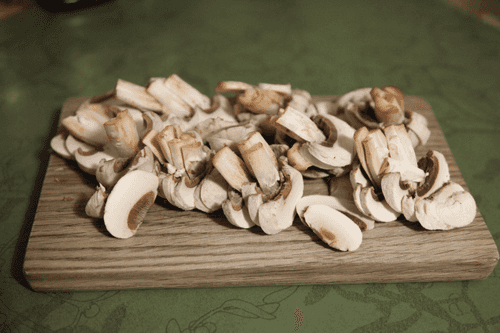 Clean the mushrooms and slice them.