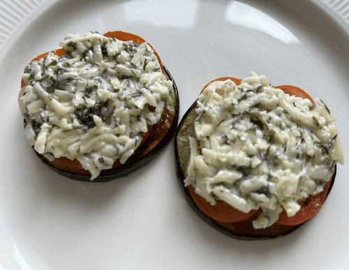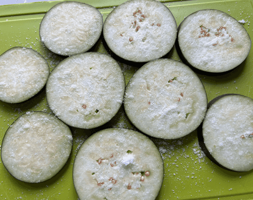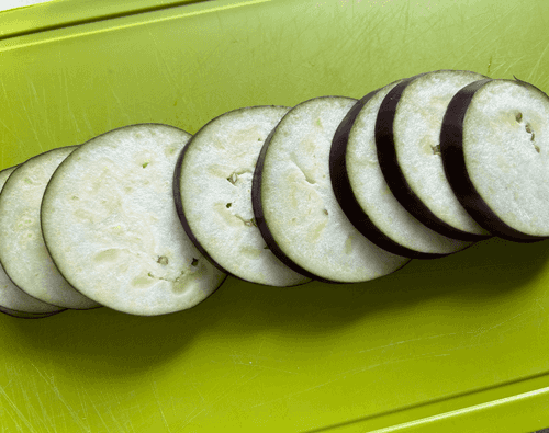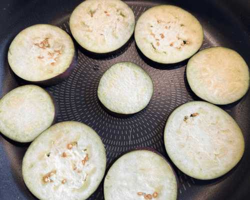 Fry the eggplants in vegetable oil for 2-3 minutes on each side.