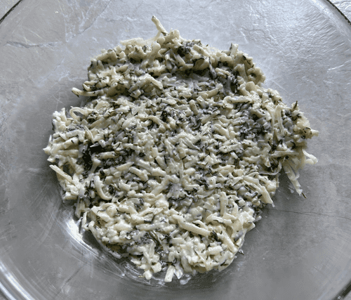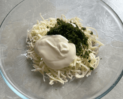 Put cheese, mayonnaise, garlic, and dill in a bowl.