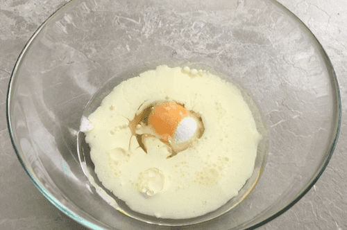 Add egg, milk, vegetable oil, and salt to the bowl.