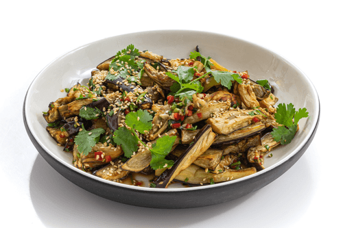 Баклажаны по-корейски – это блюдо, полное вкусовых контрастов и ароматов. Оно берет свое вдохновение из корейской кухни, известной яркими специями и умелым балансом вкусов. Запеченные баклажаны приобретают нежную текстуру, а пикантный соус с соевым и рыбным оттенками придает блюду насыщенность. Чеснок и чили добавляют остроту, а кунжутное масло – ореховые нотки. Зеленый лук и кинза освежают композицию, делая ее идеальной закуской или дополнением к основным блюдам. Это блюдо не только вкусное, но и полезное, поскольку баклажаны богаты клетчаткой, а кунжутное масло и семечки – полезными жирами. Баклажаны по-корейски лучше всего подавать горячими, посыпав золотистым кунжутом, чтобы подчеркнуть их аппетитный аромат и текстуру.