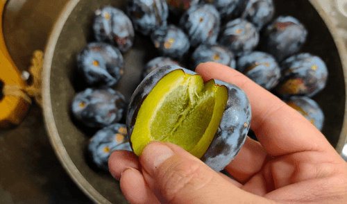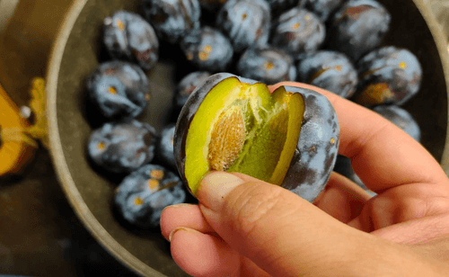 Take a plum of the 'Hungarian' variety or prunes. It should be firm.